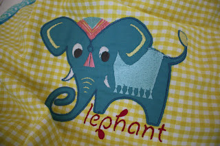 Dette er Ingelas elefant. Ingela Arrhenius' elefant. Ingela er dritflink, hun tegner så det står etter - og alt blir bare helt utrolig fint. Men Brenda er frekk, hun låner Ingelas bilder uten skam og så setter hun i gang og broderer og applikerer bildene på stoff. Sånn blir det da: